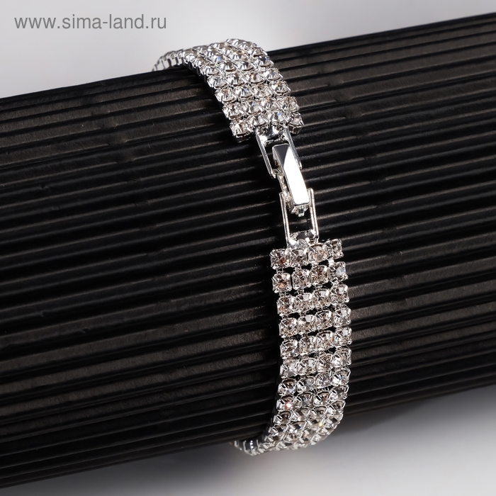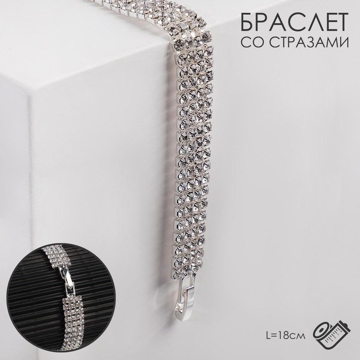 Браслет со стразами «Сияй» четыре ряда, цвет белый в серебре, 18 см