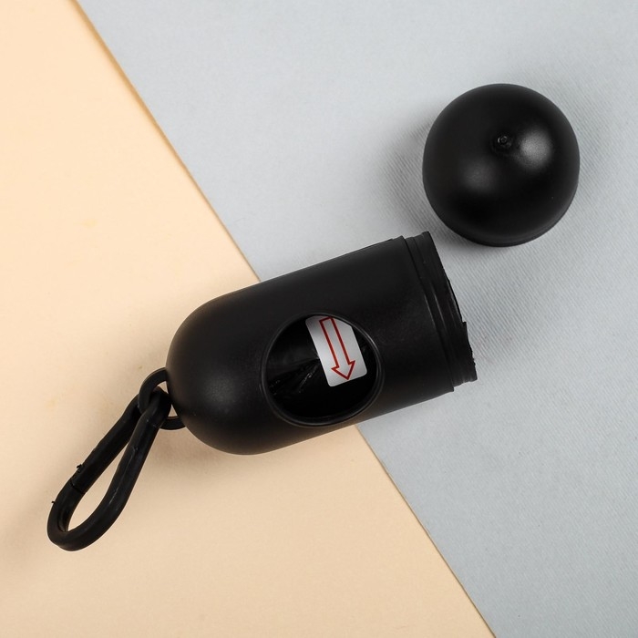Контейнер с пакетами для уборки за собаками (рулон 15 пакетов 29х21 см), чёрный