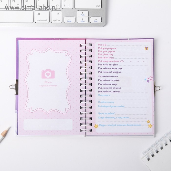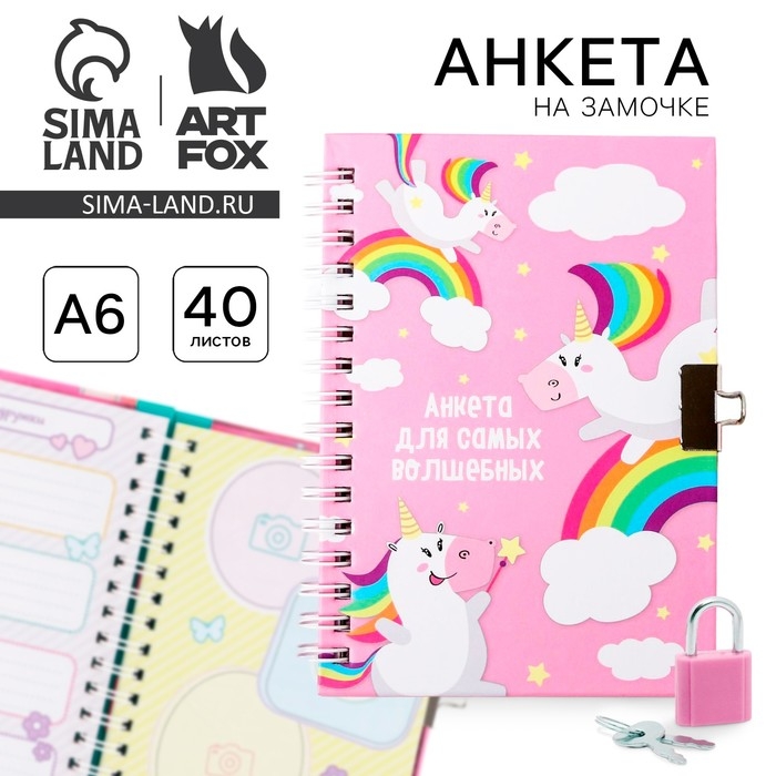 Анкета для девочек на замочке "Для самых волшебных", А6 40 листов