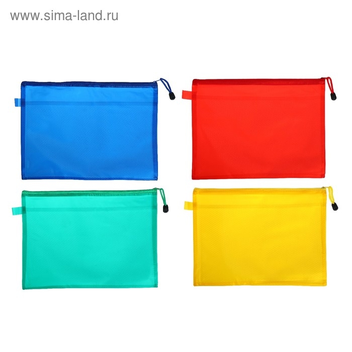 Папка-конверт на молнии, А65, с сеткой внутри, 24 × 11 cм, МИКС