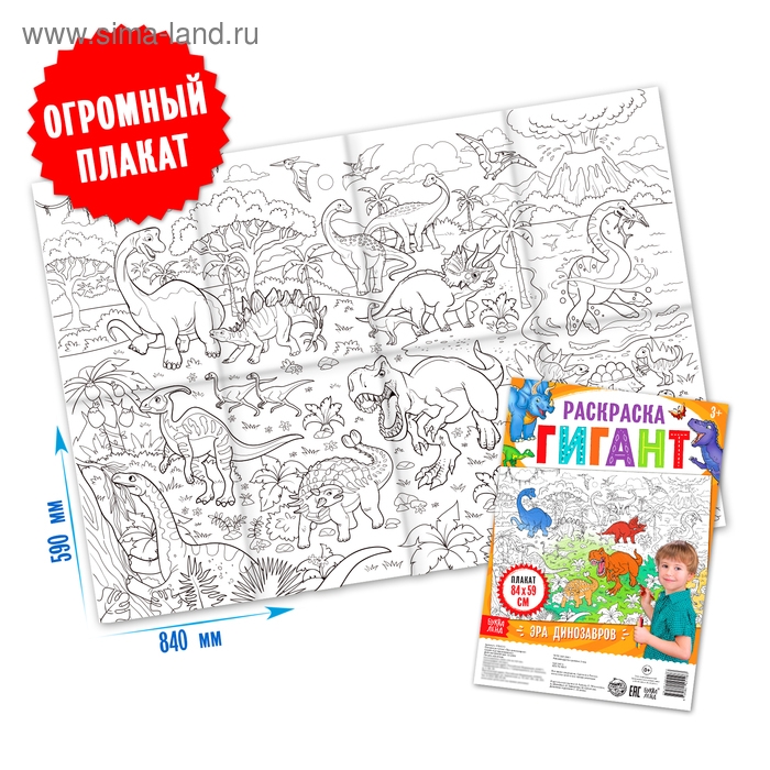 Раскраска гигант «Эра динозавров», 59 × 84 см