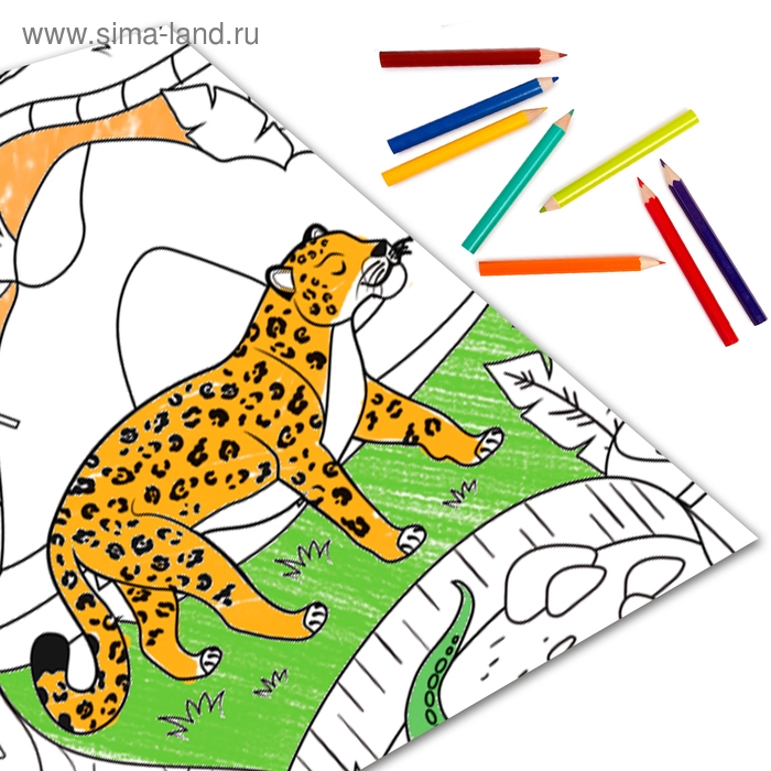 - Плакат большого размера предоставляет обширное поле для раскрашивания, где малыш может экспериментировать с карандашами или акварелью.