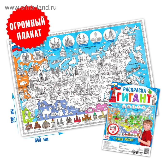 Обучающий плакат-раскраска «Наша Россия», 59 × 84 см