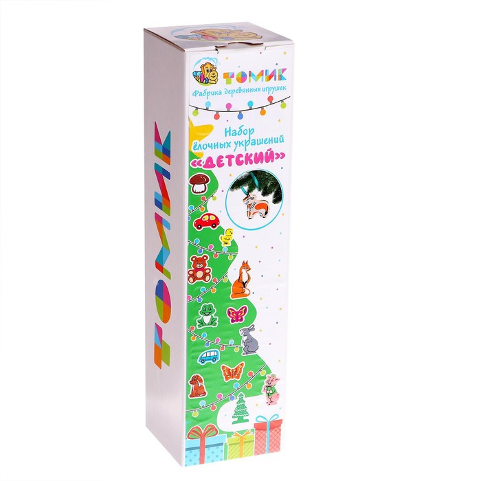 Набор ёлочных игрушек «Детский» — универсальный деревянный набор, эти игрушки легко крепятся на ёлку и будут радовать вас на протяжении всего праздника. Игрушки украшены яркими цветными рисунками и станут прекрасным дополнением к оформлению вашего новогоднего интерьера.