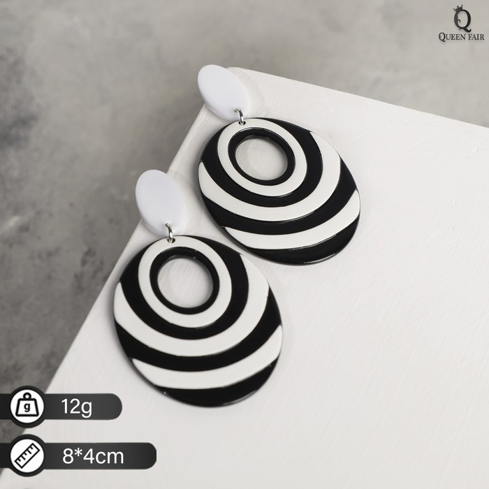 Серьги пластик «Вивьен» спираль-овал, цвет чёрно-белый