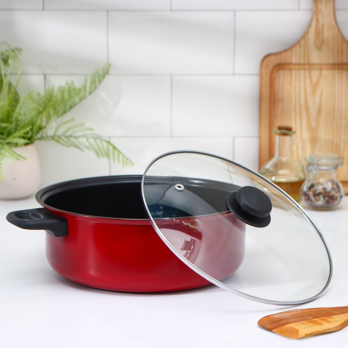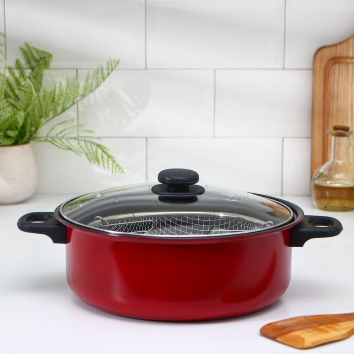 Кастрюля «Ренард», 4 л, с крышкой, сетка фри 26×9 см, антипригарное покрытие, цвет красный