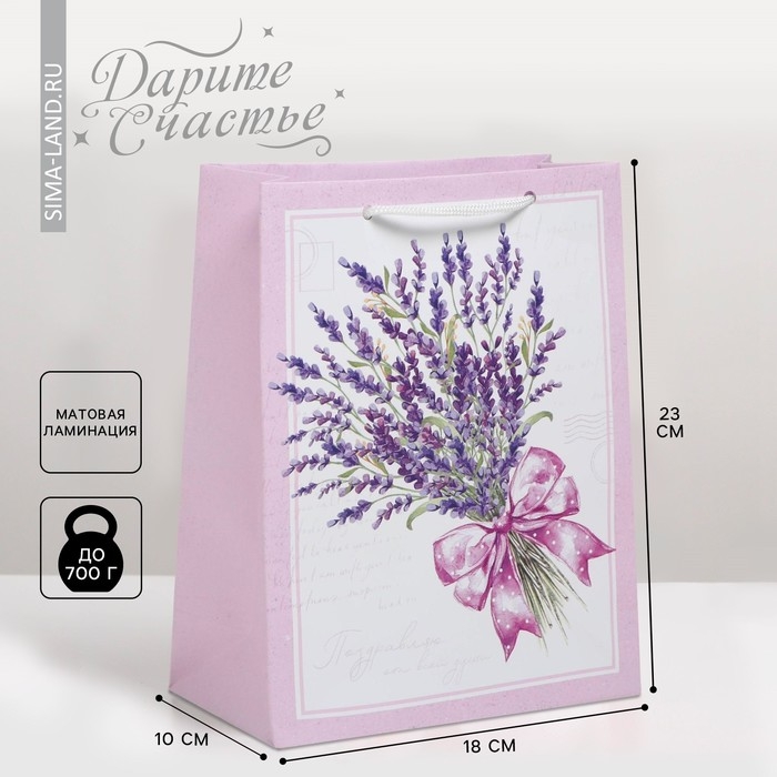 Пакет подарочный ламинированный вертикальный, упаковка, «Букет», MS 18 х 23 х 8 см