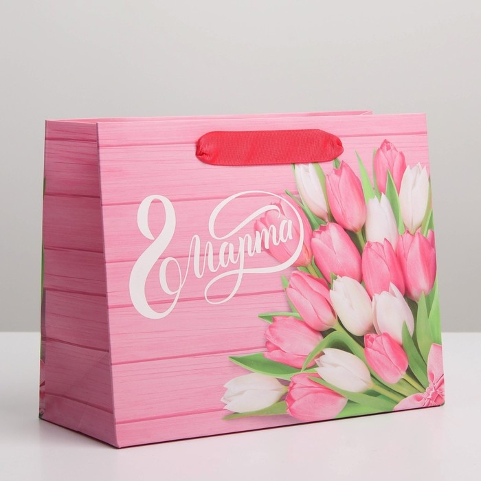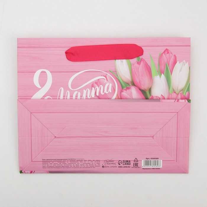 Пакет подарочный ламинированный горизонтальный, упаковка, «Женский день», MS 23 х 18 х 10 см