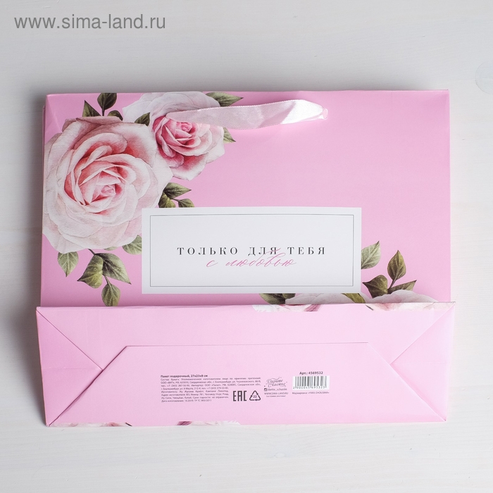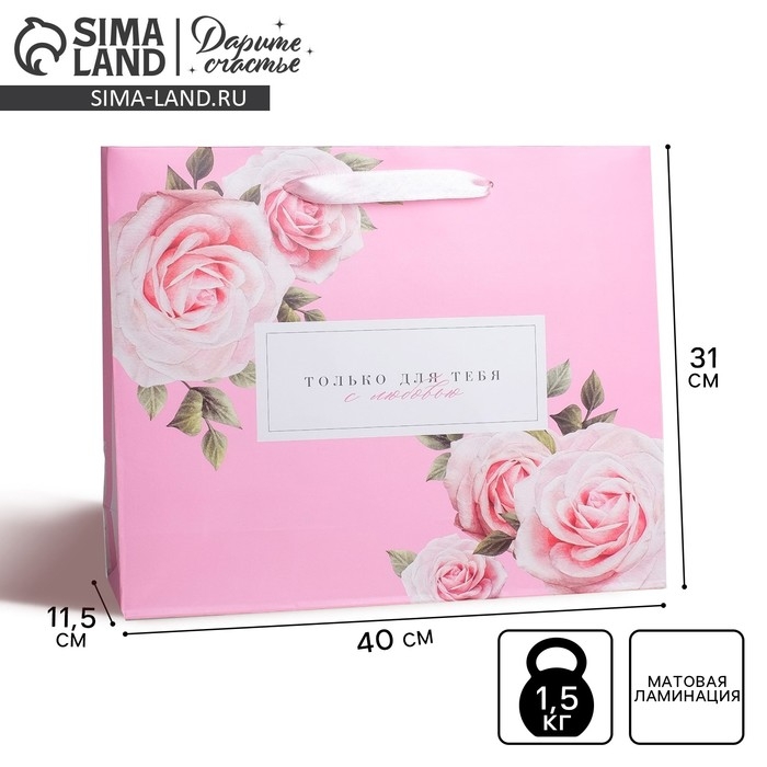 Пакет подарочный ламинированный горизонтальный, упаковка, «Только для тебя с любовью», L 40 х 31 х 11,5 см