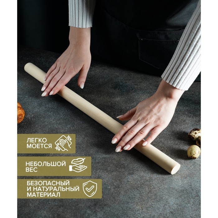 Скалка с ручками, 36×4 см, рабочая часть 19,5 см, бук