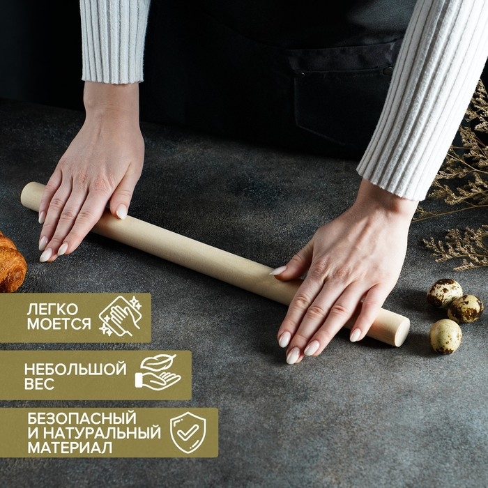 Скалка прямая Доляна, 40×3 см, берёза