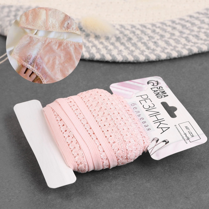 Резинка ажурная бельевая, 14 мм, 10 ± 1 м, цвет розовый