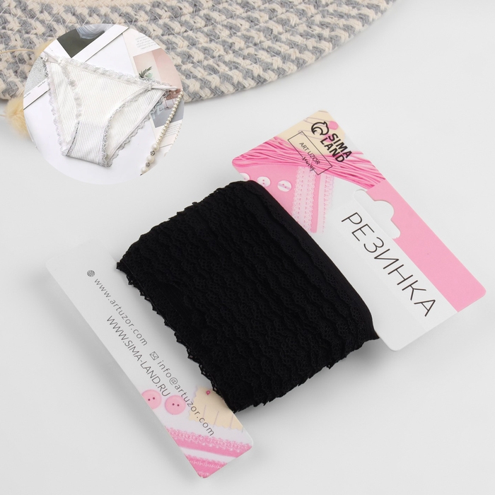 Резинка ажурная бельевая, 11 мм, 10 ± 1 м, цвет чёрный