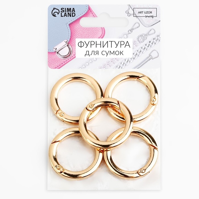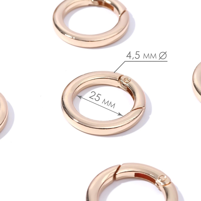 Кольцо-карабин плоский, d = 25/34 мм, толщина - 4,5 мм, 5 шт, цвет золотой