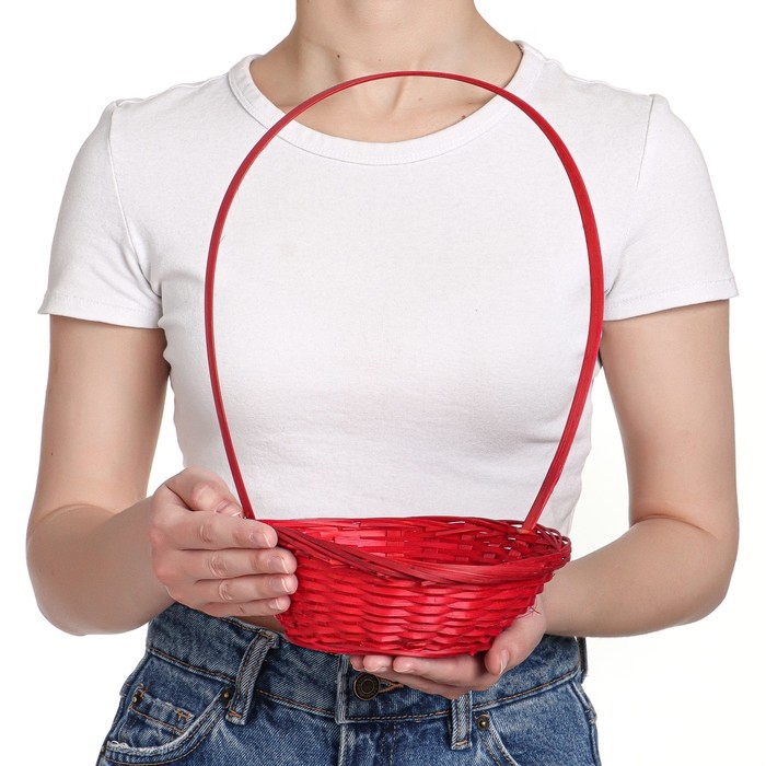 Корзина плетеная, бамбук, D19xH5 см, красный