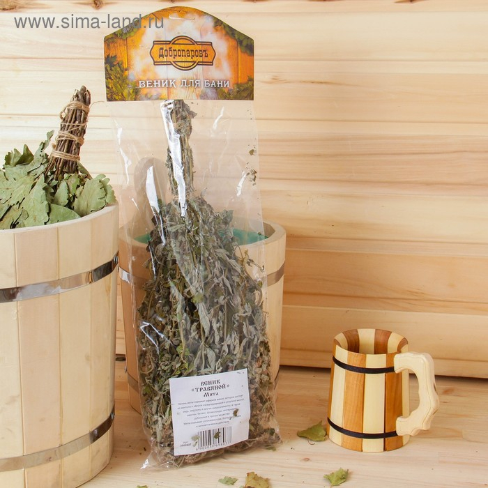 Веник для бани 45 (+-5) см ТРАВЯНОЙ из мяты, в индивидуальной упаковке
