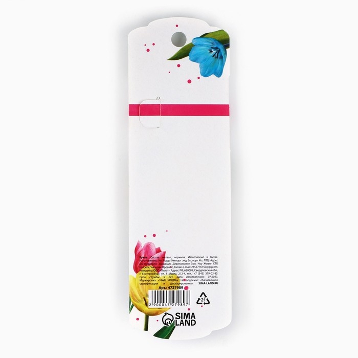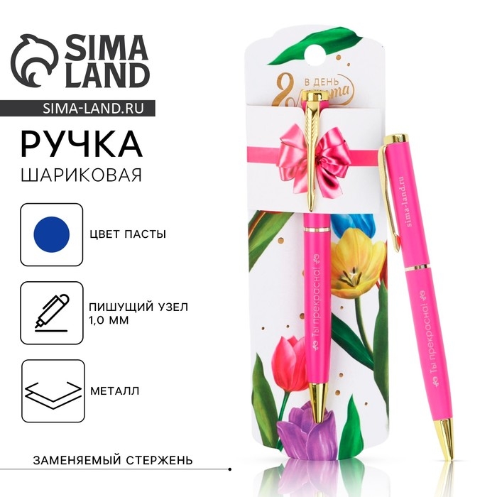Ручка шариковая синяя паста «Цветок»,пластик, на подложке 8 марта