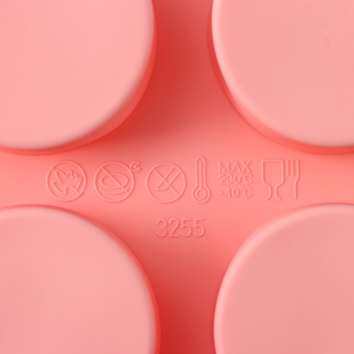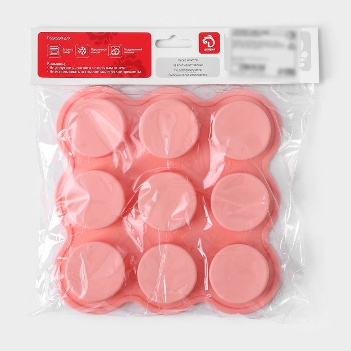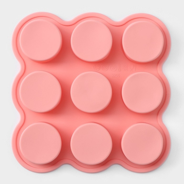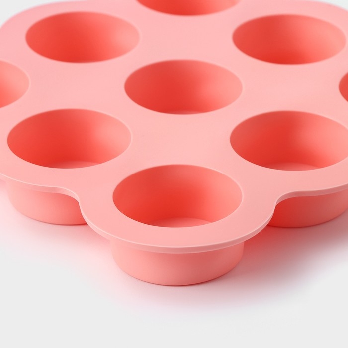 Форма для выпечки Доляна «Круг», 15,5×15,5×2 см, 9 ячеек (d=3,8 см), цвет розовый