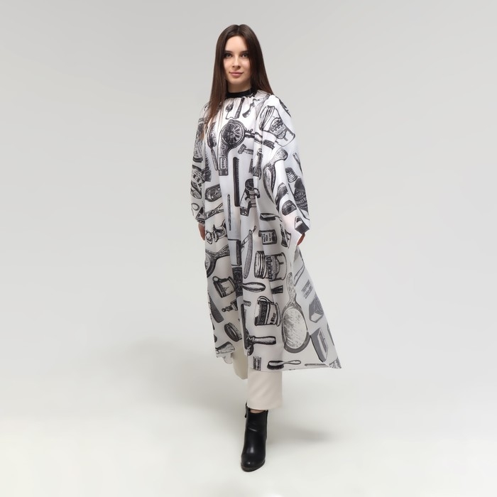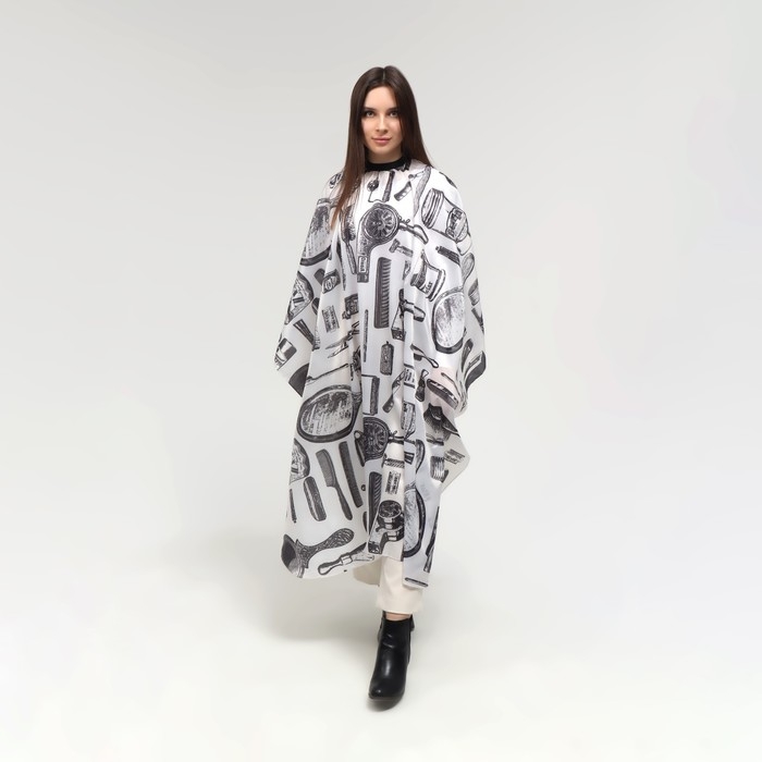 Пеньюар защитит одежду клиента от попадания волос, воды, краски и других составов. Он мягко обхватит шею без утяжеления. Универсальный размер подойдёт людям всех пропорций. Не использовать высокие температуры для разглаживания пеньюара. Рекомендуется использовать метод отпаривания.