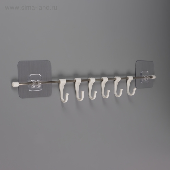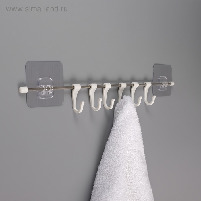 Держатель для полотенец, 4 крючка, 58×10×7,5 см, цвет чёрный