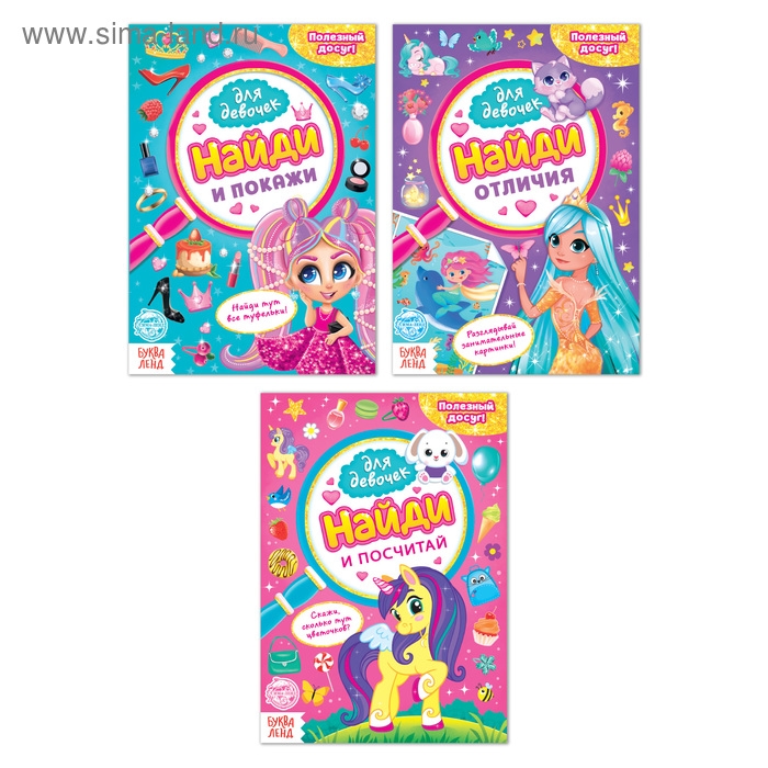 Книги для девочек «Найди и покажи», набор 3 шт. по 12 стр.