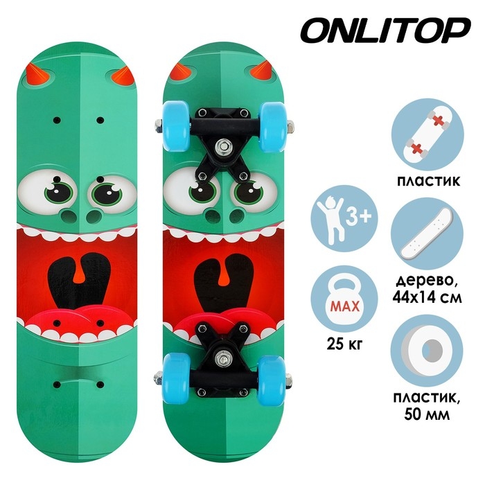 Скейтборд детский ONLITOP «Монстрик», 44×14 см, колёса PVC 50 мм, пластиковая рама