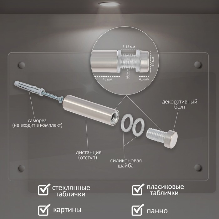 Дистанционный держатель предназначен для закрепления информационных табличек на определенном расстоянии от стены.