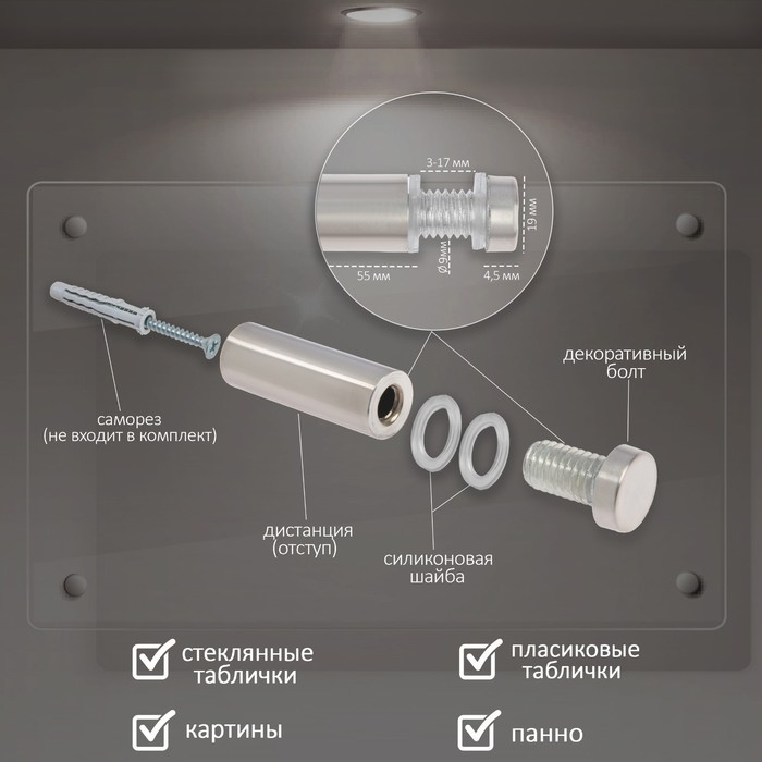 Дистанционный держатель предназначен для закрепления информационных табличек на определенном расстоянии от стены.
