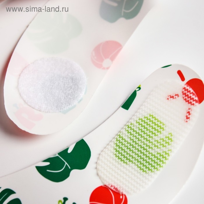 Изделие выполнено из мягкого материала, имеет безопасные края. Приспособление фиксируется за шеей с помощью застёжки.