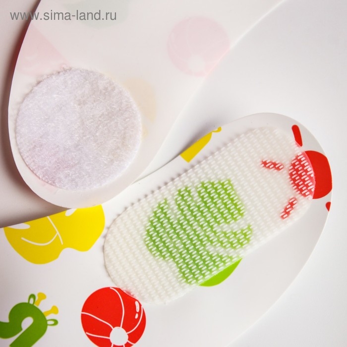 Изделие выполнено из мягкого материала, имеет безопасные края. Приспособление фиксируется за шеей с помощью застёжки.
