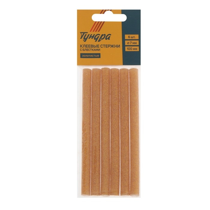 Клеевые стержни ТУНДРА, 7 х 100 мм, золотистые с блестками, 6 шт.