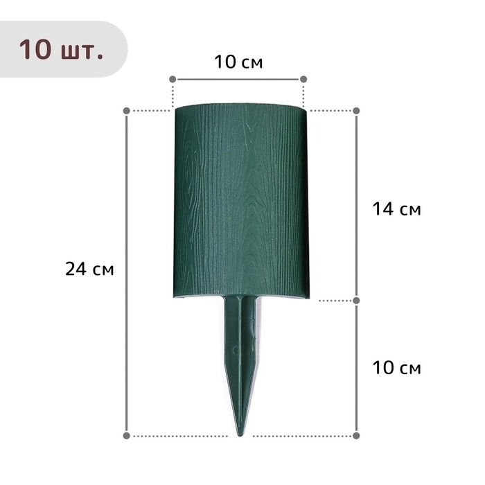 Ограждение декоративное, 24 × 100 см, 10 секций, пластик, зелёное, «Брёвнышко»