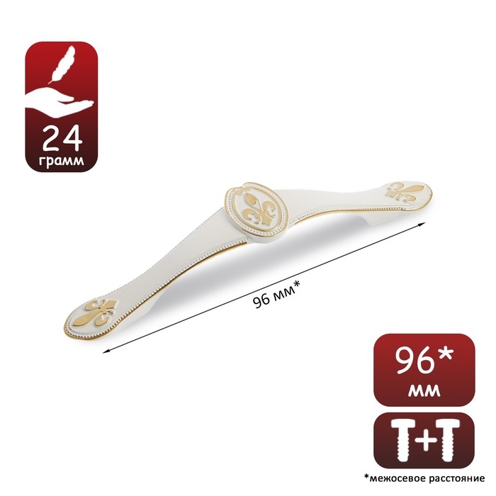 Ручка-скоба PC174, 96 мм, цвет белый с золотым