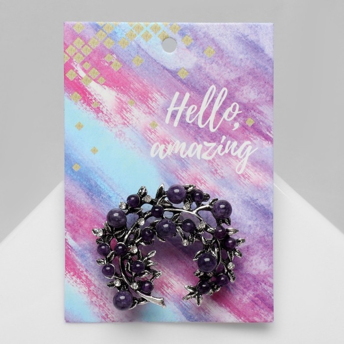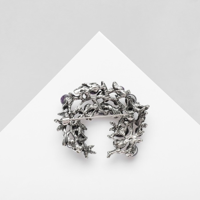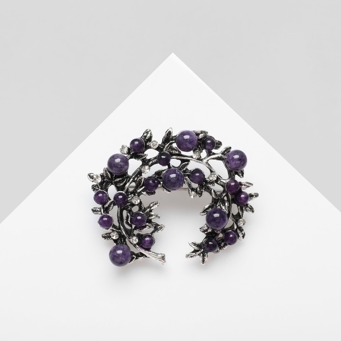 Брошь «Ветвь аметиста», цвет фиолетовый в чернёном серебре