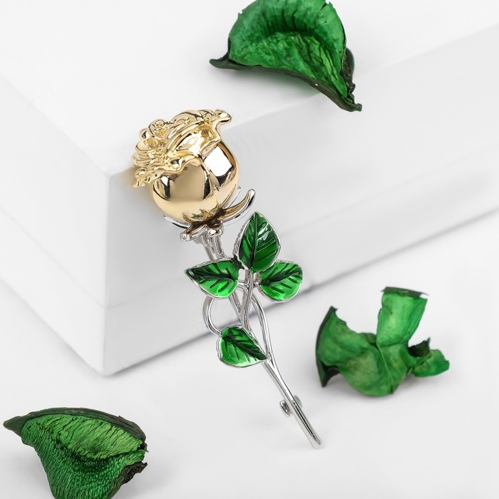 Брошь «Цветок» роза, цвет зелёный в серебряно-золотом