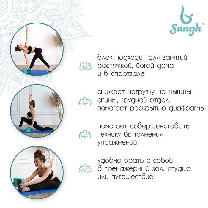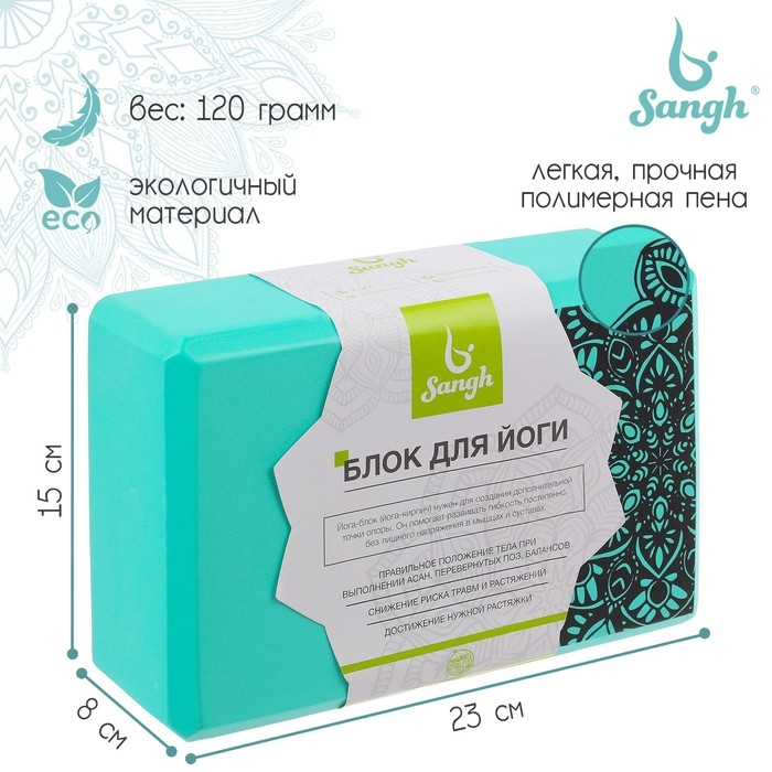 Блок для йоги Sangh, 23×15×8 см, цвет мятный