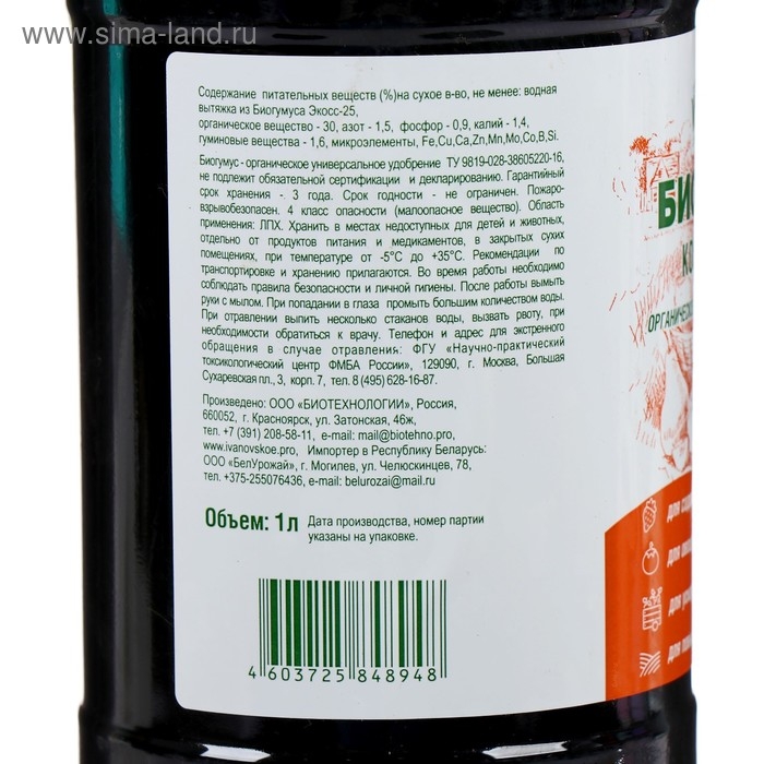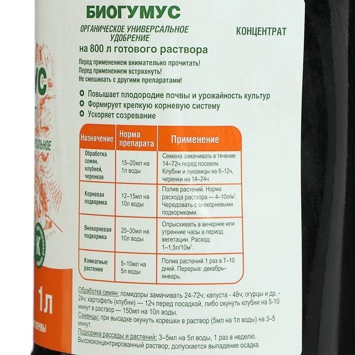 Органическое удобрение Биогумус Универсальное Ивановское, 1 л