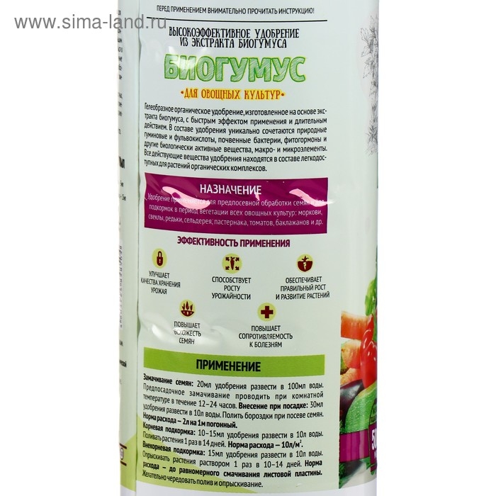 Уникальное сочетание микроэлементов, бактерий и биологически активных веществ способствует улучшению качественных характеристик почвы, повышает сопротивляемость растений болезням и обеспечивает их правильное развитие. Благодаря гелеобразной форме все питательные вещества, находящиеся в составе, легко усваиваются растениями.
