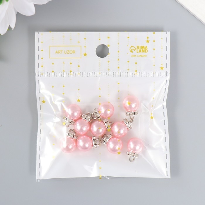 Декор для творчества пластик "Розовая жемчужина с петелькой" набор 10 шт 1х1,2 см
