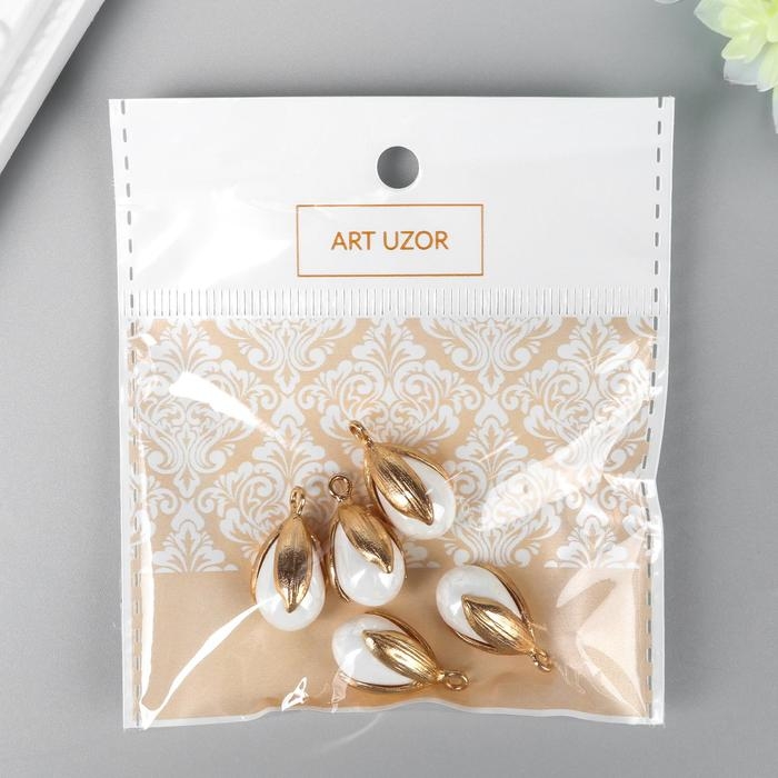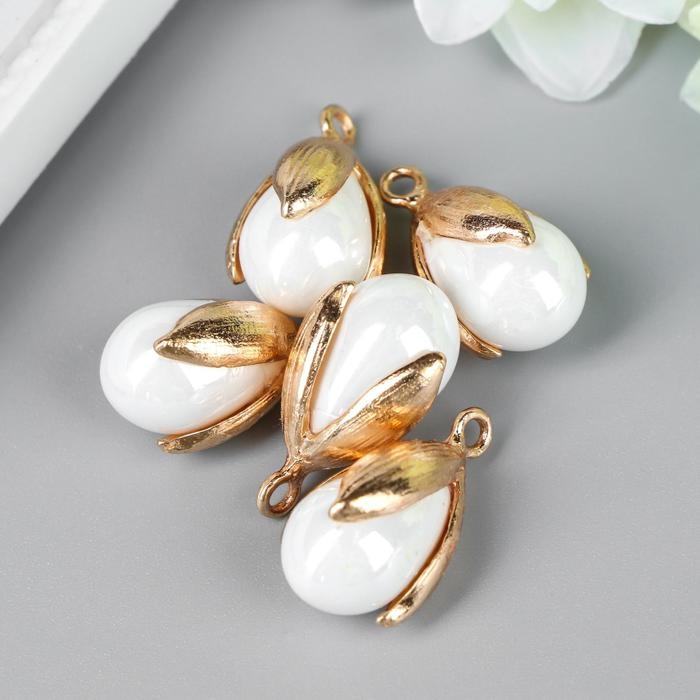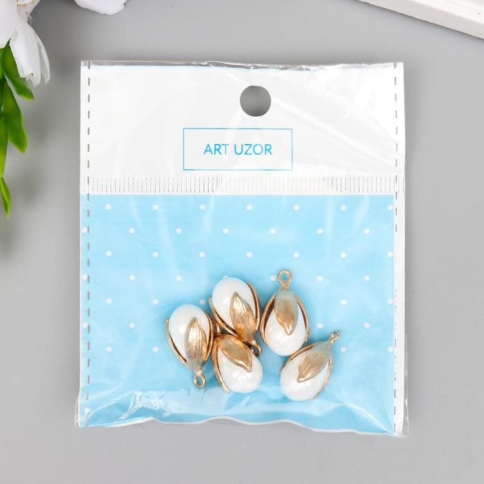 Декор для творчества пластик "Жемчужинка в раковине с петелькой" набор 5 шт 1,2х1,6 см