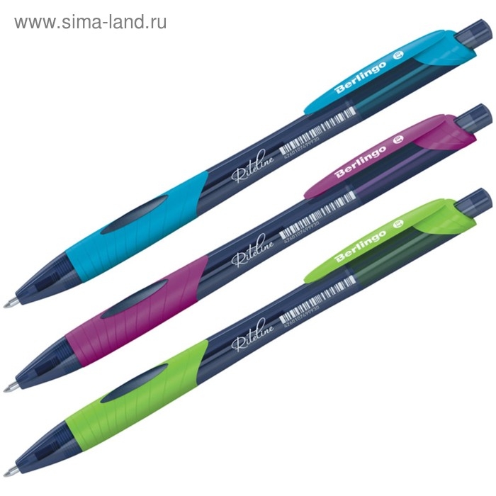 Шариковая автоматическая ручка Berlingo Riteline в стильном контрастном дизайне. Тонированный круглый корпус ручки с применением двойного литья, резиновая зона захвата и пластиковый клип создают дополнительный комфорт при письме. Диаметр пишущего узла составляет 0,7 мм, толщина линии письма – 0,5 мм, а длина письма – 1000 м.Цвет чернил: синяя,Толщина линии письма: 0,5 мм,Длина письма: 1000 м,Цвет корпуса: микс из 3-х цветов.