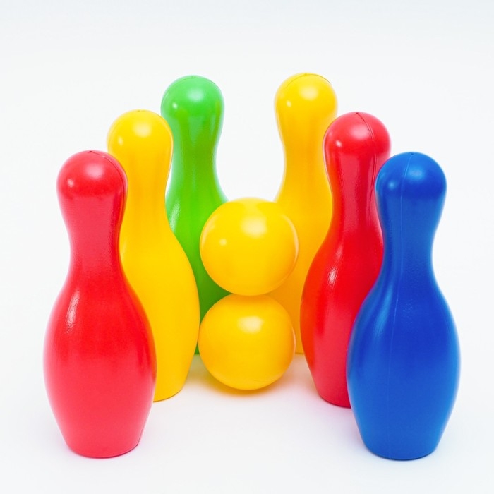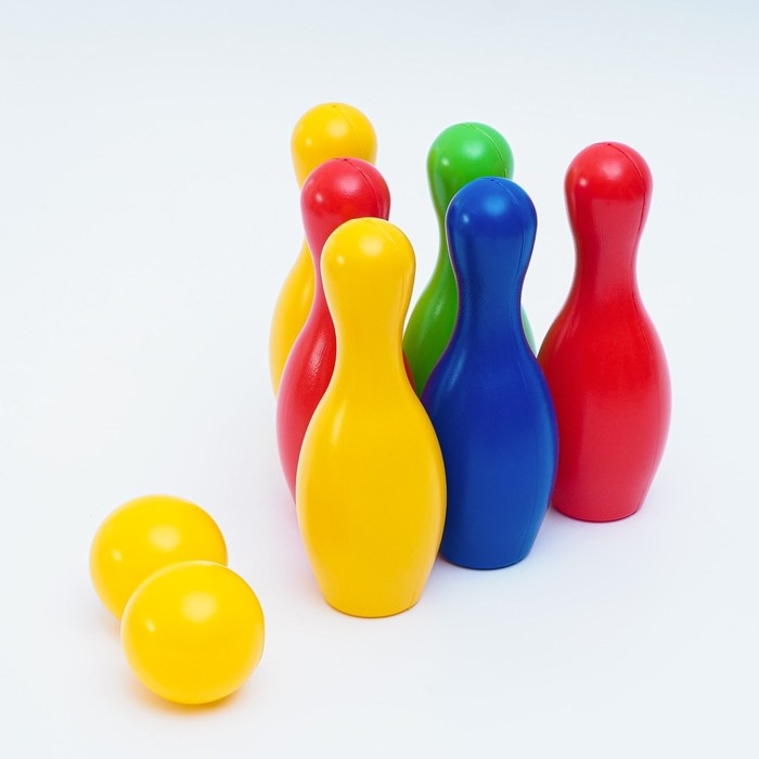 Боулинг детский цветной, набор: 6 кеглей 21 х 7 см, 2 мяча d-6.5 см