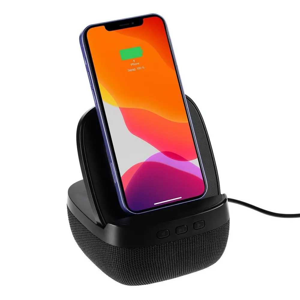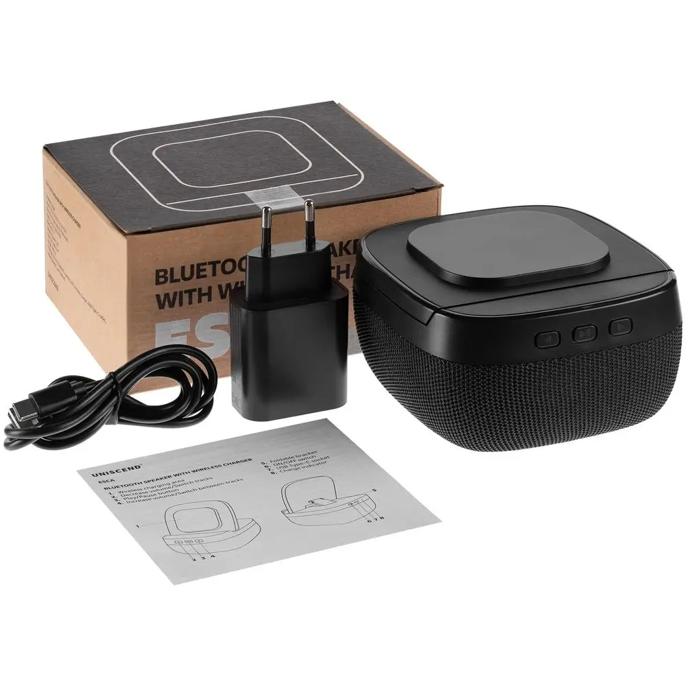 Колонка c беспроводной зарядкой Esca и подсветкой лого, черная