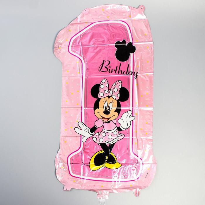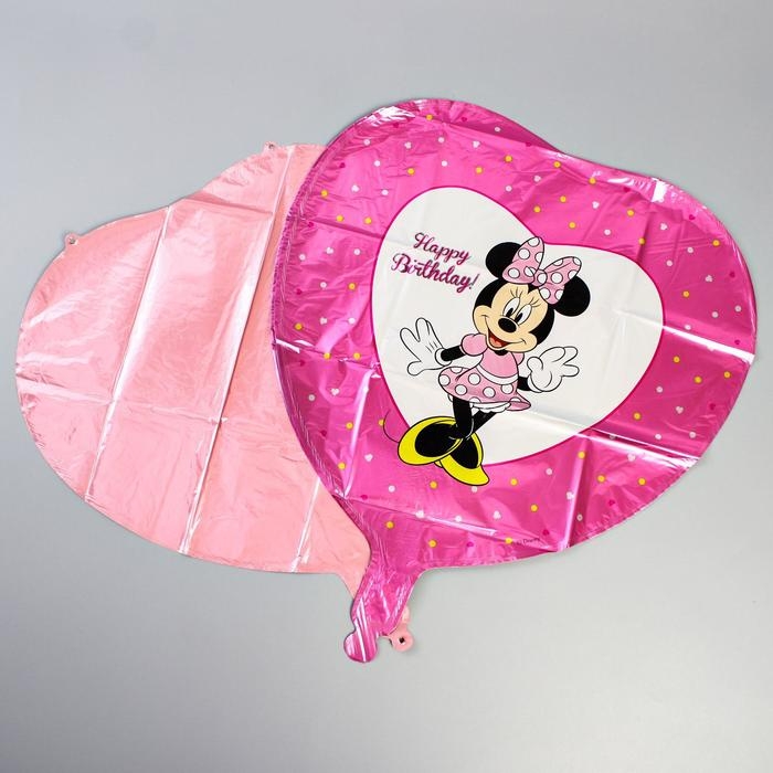 Букет из шаров фольгированных "Happy Birthday", набор 5 шт, Минни Маус, 4 сердечка, единичка