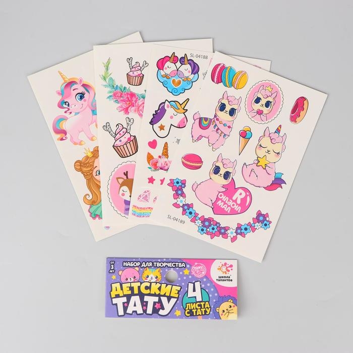 Набор детских татуировок переводок, 4 листа