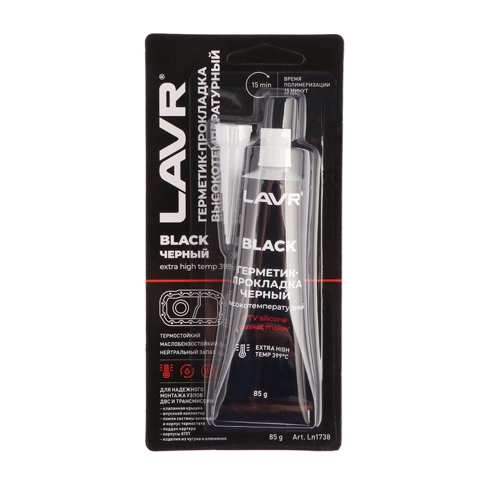 LAVR представляет самый мощный герметик-прокладку для тяжелонагруженных примыкающих узлов и соединений двигателей, КПП. Герметик-прокладка черный высокотемпературный от LAVR полимеризуется за 15 минут и может заменять резиновые, бумажные, металлические прокладки, уплотнители и сальники. Быстрый и сильный состав имеет диапазон рабочих температур от -62°С до +399°С и подходит для герметизации самых важных узлов. Он не содержит кислот и растворителей, что обеспечивает применение в электрических соединениях и датчиках.