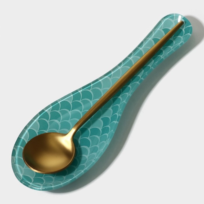 Подставка стеклянная под ложку Доляна «Сирена», 23,5×8,3 см, цвет бирюзовый