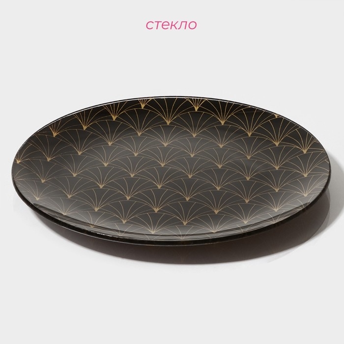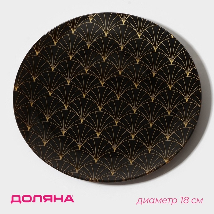 Тарелка стеклянная Доляна «Золотое перо», d=18 см, цвет чёрный