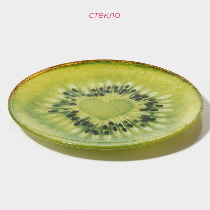 Тарелка стеклянная Доляна «Романтичный киви», d=20 см, цвет зелёный