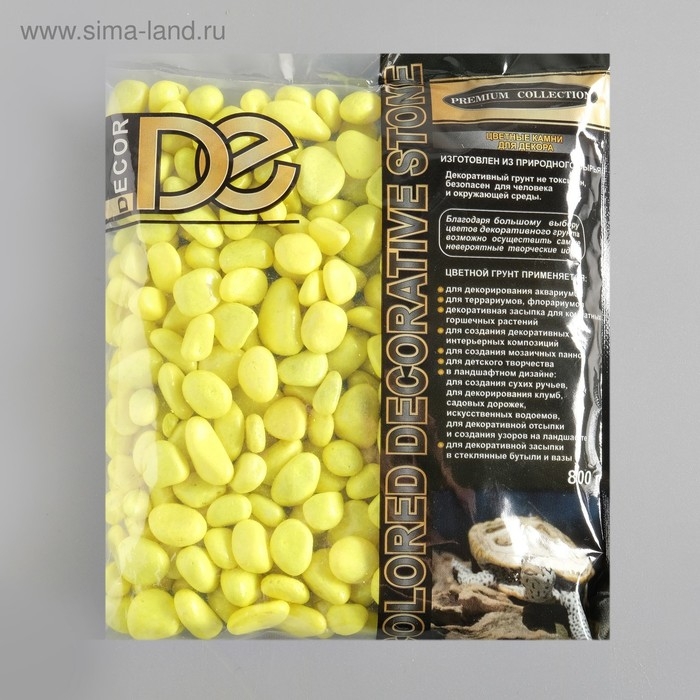 Грунт декоративный, флуоресцентный, лимонный, 800 г , фр 8-12 мм